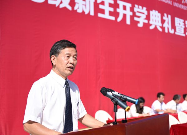 校长王渊明作了以《青春正好以梦为马砥砺前行不负韶华》为题的致辞。他首先代表全校师生员工向来自五湖四海的2018级新生表示热烈的欢迎!在同学们的大学生活开启之际,他向同学们提出几点建议:一要心怀梦想,志存高远;二要珍惜韶华,勤奋学习;三要正心修身,崇德向善。最后,王渊明校长说,同学们初入黄海,人生再启航程,正是求知的大好年华,希望你们不负时代、不负韶华,用远大理想指引人生方向,用求真求实铸就本领力量,用仁爱包容回馈社会培养,用大美情怀擎起历史担当,以青春和奋斗的笔墨,绘就大学精彩华章!