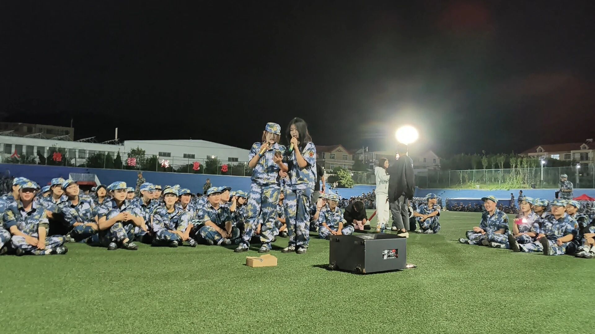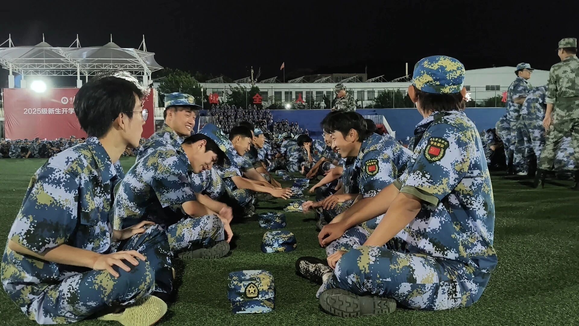 9月18日,今晚的风终于吹散了白天的燥热,也把我们从站军姿、踢正步的紧张里拉出来,夜晚的操场,并未因此沉寂,反而被一阵阵欢声笑语所充盈!