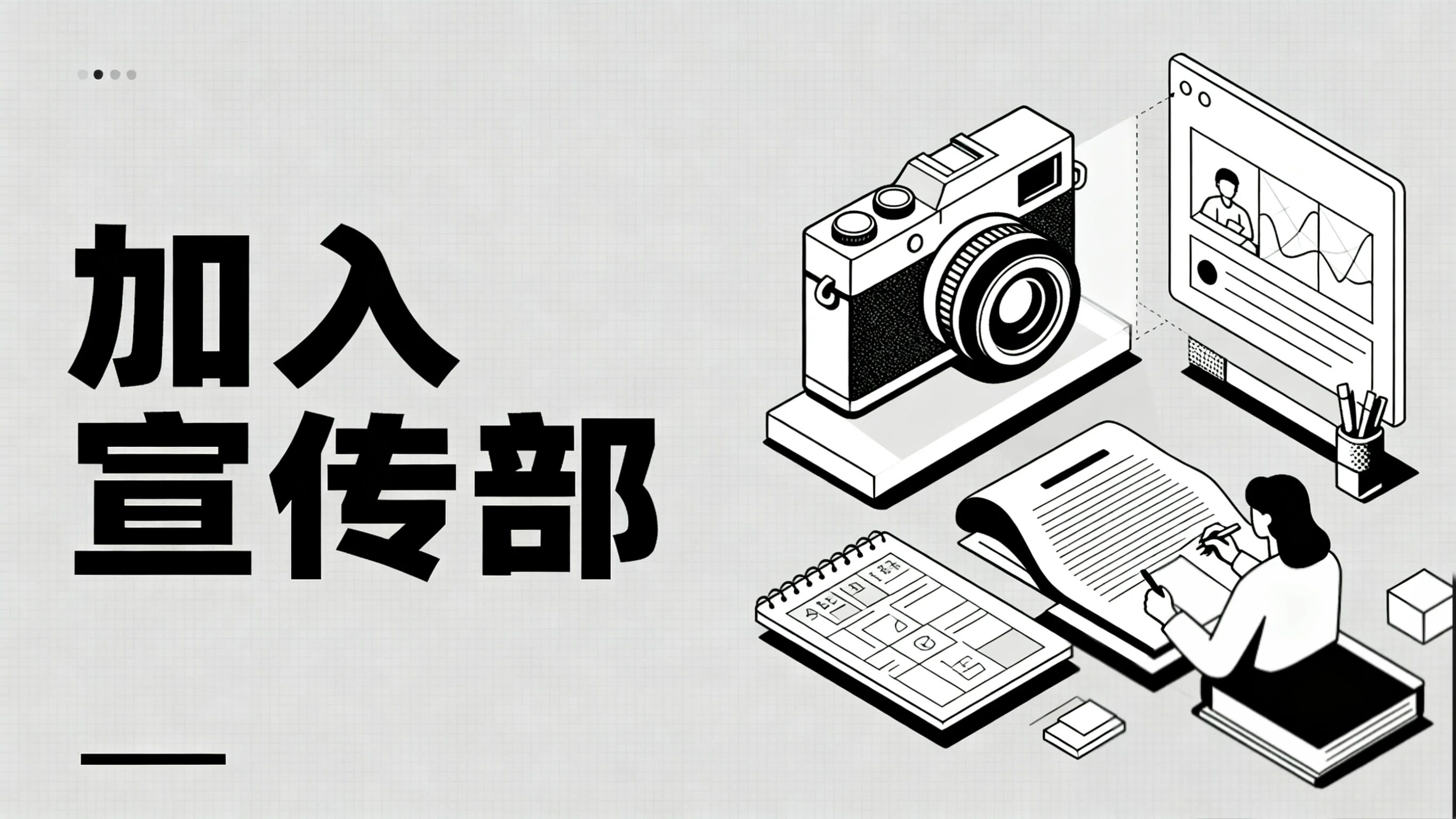 想让精心设计的海报贴满校园长廊?想让原创文案在官方平台收获满屏点赞?想亲手策划的活动成为全校同学热议的焦点?现在,校学生会宣传部招新正式启动,这里就是你展现才华、实现创意的绝佳舞台!