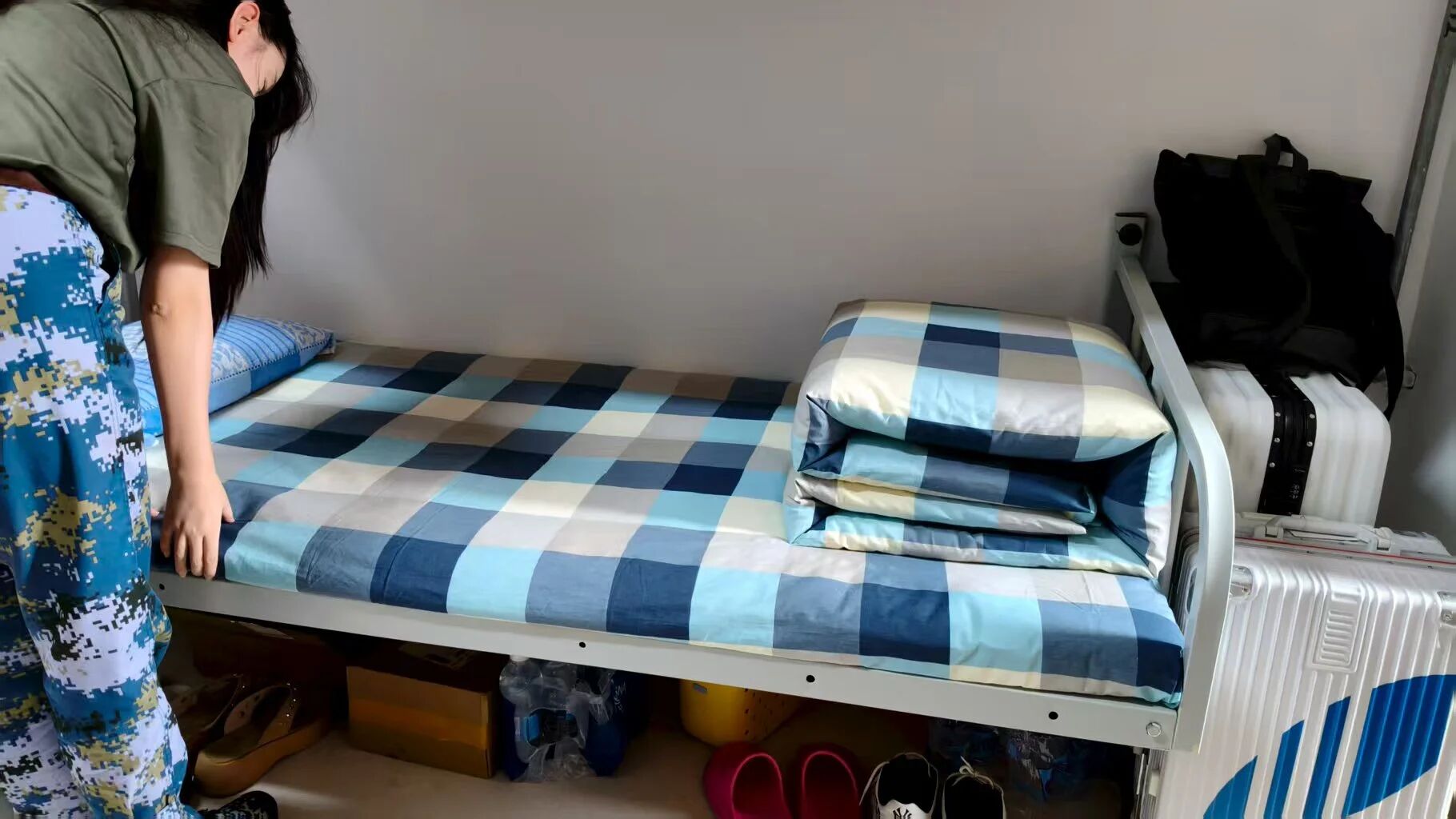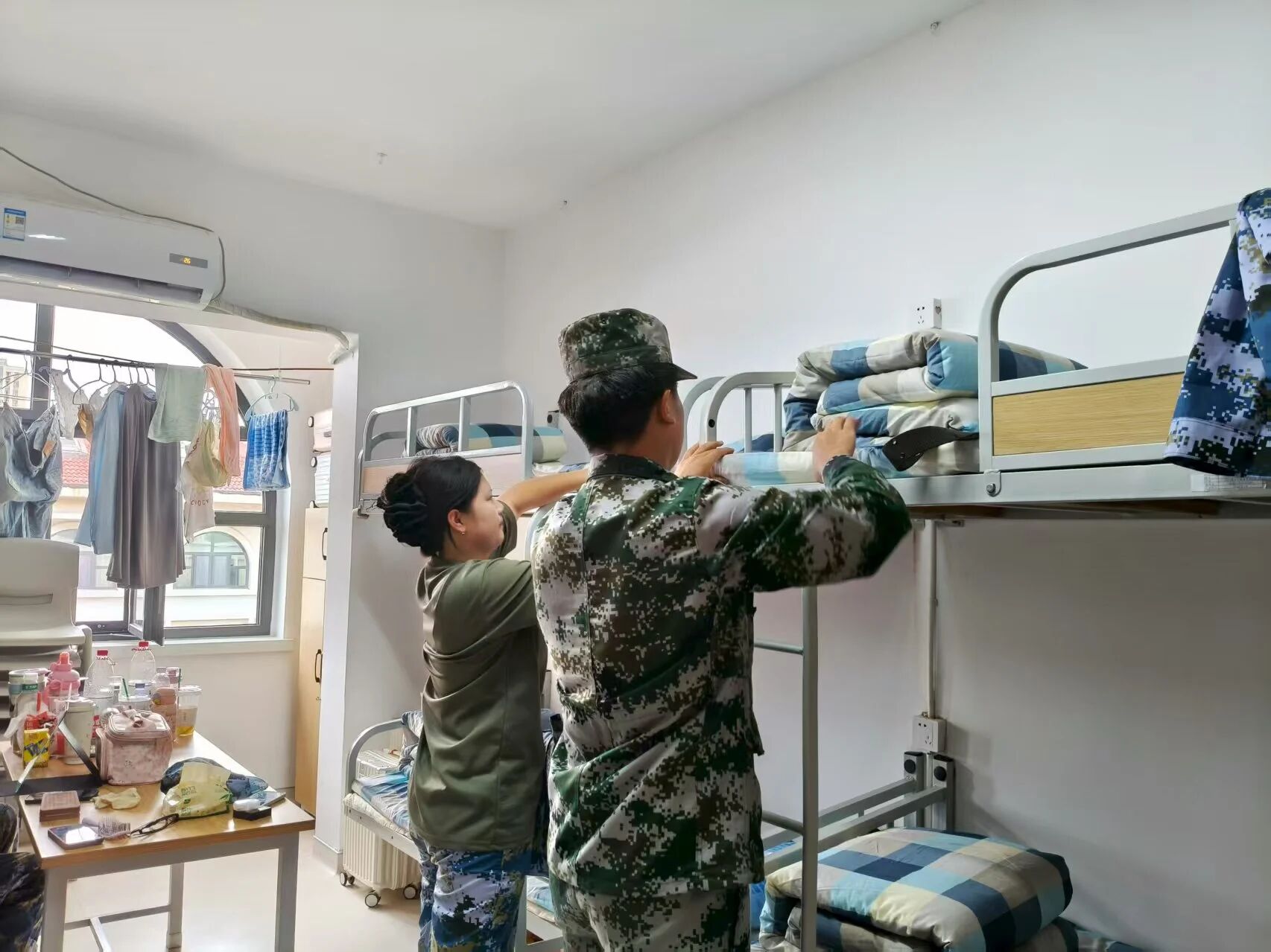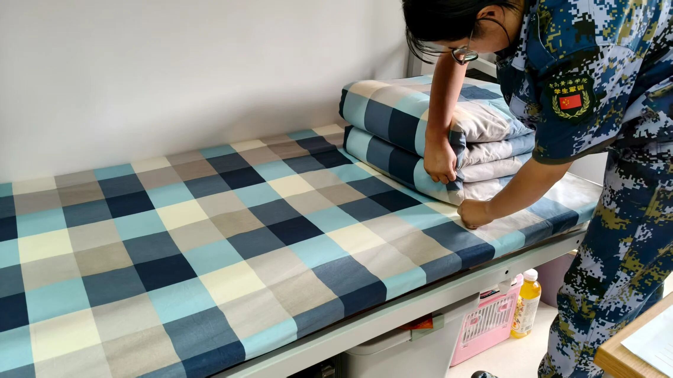 烈日之下用汗水浇灌拼搏青春,宿舍之中用整洁打造温馨家园。内务整理是军训的必修课之一,是培养学生良好生活习惯的重要途径。