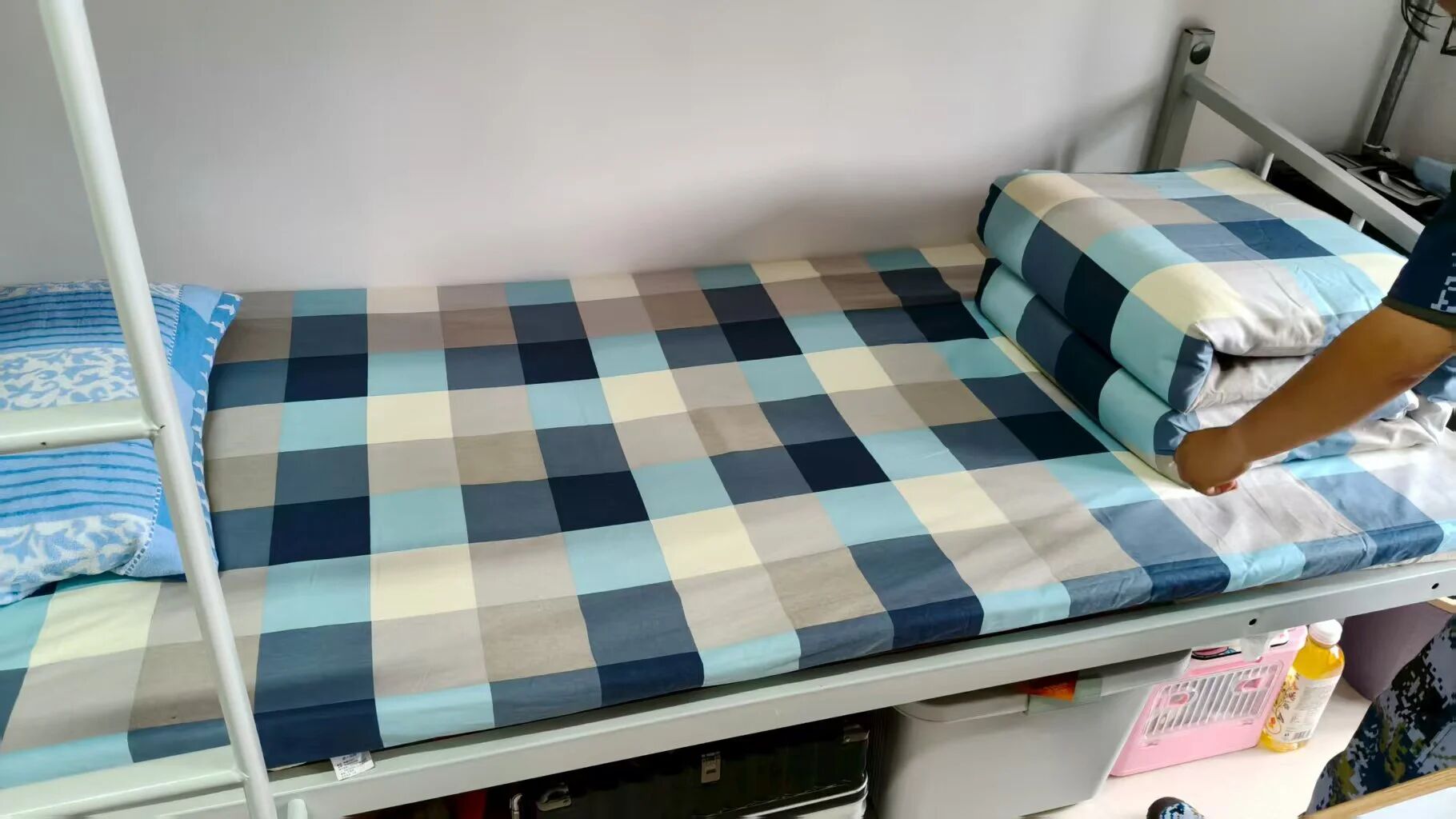 1. 床铺整理:部分同学在床铺整理的细节上还有待提高,比如被子的棱角不够分明,床单的拉伸不够平整。