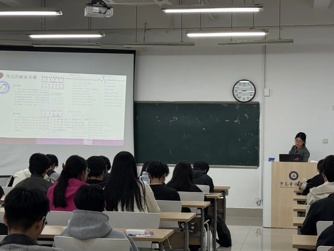 宣讲现场,宣讲团围绕着同学们最关心的问题展开细致讲解:在献血要求上,明确了18-55周岁(最高可延至60周岁)、体重达标、血压脉搏正常等基础条件,同时针对不同人群给出200ml或400ml的献血规格建议,让同学们清晰了解自身是否符合献血标准;在注意事项上,系统梳理了献血前清淡饮食、保证睡眠,献血后按压止血、避免剧烈运动等关键要点,更详细科普了献血后身体的自我调节机制,用科学数据打破“献血伤元气”的误区。针对大众普遍存在的认知误区,宣讲团逐一进行科学辟谣:“献血会伤身体?”——健康成人一次献血200-400ml仅占全身血量的5%-10%,身体会在数小时内恢复血容量,1-2周内补充完所有血液成分,反而能促进血液循环、降低心血管疾病风险;“献血会感染传染病?”——正规采血点全程使用一次性无菌耗材,严格执行无菌操作,感染风险为零。
