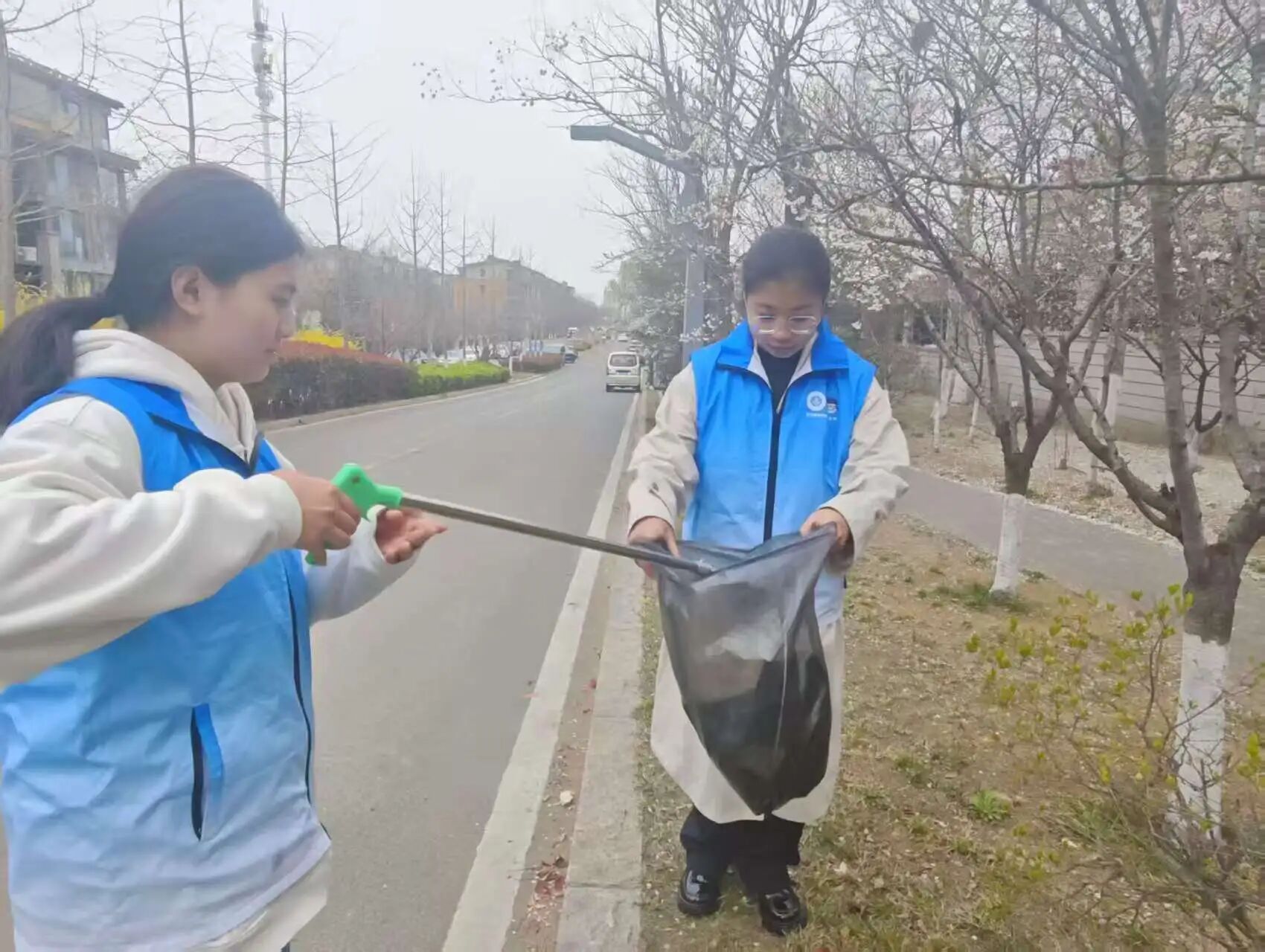 沿街绿化带组的志愿者们同样干劲十足,他们穿梭在绿植之间,耐心清理塑料袋、枯枝败叶等垃圾,用双手守护社区的绿色脉络。活动现场,志愿者们分工协作、密切配合,清扫组、擦拭组、清运组之间衔接流畅,形成了“一人动手、众人相助”的良好氛围。这种分工明确、互助共进的劳动场景,正是劳动精神中“团结协作”的深刻体现,也让每一位志愿者在并肩作战中,体会到集体劳动的力量与温度。