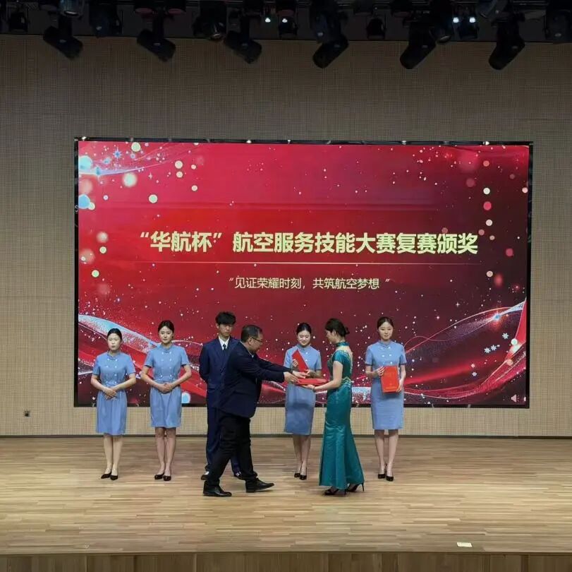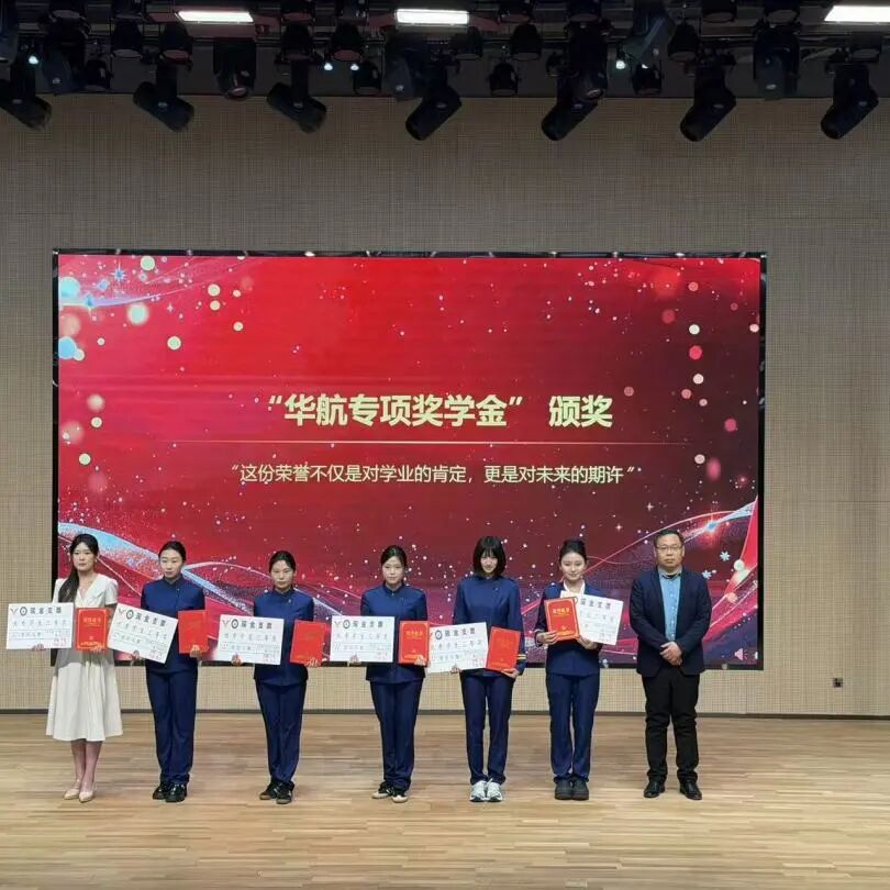 盛典最后,北京华航航空服务有限公司副总经理温振军上台致辞,他指出,“华航杯”航空服务技能大赛是检验教学成果、展示学子风采的重要平台,同学们以扎实的专业知识展现了新时代航空人的职业风范,华航专项奖学金既是企业回馈教育的暖心举措,也是校企协同育人的重要纽带,不仅为获奖学子提供了物质支持,更赋予了强大的精神激励,寄托着校企双方共同培育品德高尚、技能精湛、作风过硬航空人才的殷切期望;他勉励同学们常怀感恩之心,将荣誉转化为奋进动力,严格要求自身,主动把握民航强国建设的时代机遇,把个人成长融入国家航空事业发展大局,努力成为有情怀、有担当的新时代航空人,以过硬本领、暖心服务在平凡岗位上书写不凡业绩。2026年“华航杯”航空服务技能大赛复赛颁奖仪式暨华航专项奖学金颁奖仪式圆满落幕,本次活动不仅表彰了优秀学子与先进集体,更充分展现了学校航空专业校企协同育人的扎实成效,进一步深化了校企合作内涵,为专业建设与高质量人才培养注入了强劲动力。