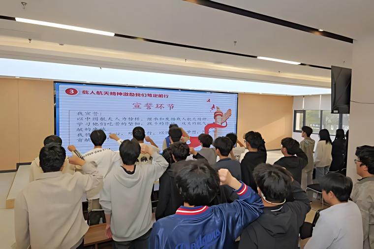 在全体参与者的见证下,志愿者们庄严举起右手,郑重宣誓。铿锵有力的誓言响彻现场,每一句承诺都彰显着青年学子传承航天精神、恪守志愿准则的坚定决心;每一张脸庞都写满忠诚与担当,以青春之名守护航天科普事业,以奉献之心践行时代使命。