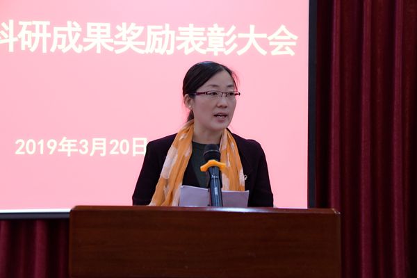 获奖教师代表李靖发言,她回顾了自己入职黄海学院十年来的工作和感悟。她表示,自己科研成绩的取得和个人的不断进步得益于学校提供的良好平台和浓厚的科研氛围。当前正值我校建设省内一流高校的关键时期,青年教师应当全力以赴地投身于黄海建设,秉承学校的优秀传统,继续保持锐意进取的竞争精神,团结协作、严谨治学、潜心科研,力争多出高质量的科研成果,并着力立德树人,做一个终身学习、与时俱进的教育者,不辜负教师的神圣职责和光荣使命!