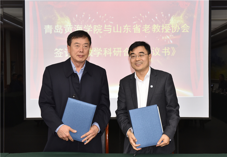 11月8日上午,山东省老教授协会“知名教授讲授团”首批专家聘任签约仪式在我校知韵楼会议室举行。山东省高校工委原副书记、山东省老教授协会常务副会长宋焕新,山东中医药大学原纪委书记、山东省老教授协会副会长兼秘书长毛有高,齐鲁师范学院原党委书记、山东省老教授协会副会长周桂珍,青岛大学原党委书记、校长、山东省老教授协会副会长、青岛执委会会长范跃进等山东省老教授协会有关领导、“知名教授讲授团”成员,青岛黄海学院董事长刘常青、校长王渊明、校党委书记李清山等学校领导及青岛恒星科技学院、潍坊科技学院、山东外事职业大学、山东外国语职业技术大学、青岛滨海学院等参加签约学校的校长出席仪式,仪式由毛有高秘书长主持。