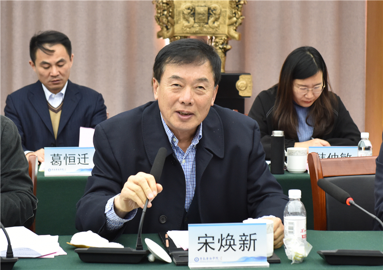 山东省老教授协会常务副会长宋焕新同志讲话,他表示青岛黄海学院是山东省老教授协会的第一家战略合作高校,这是一项具有开创性的事业。民办高校在政府和社会的支持下取得了令人瞩目的发展成就,而从规模扩张转向内涵发展的今天,人才是关键。我们建立“知名教授讲授团”、建立人才库,就是为了发挥老教授协会的资源优势,为民办高校招才引智提供桥梁和纽带,希望大家携手努力,为教育事业发展做出更大的贡献。
