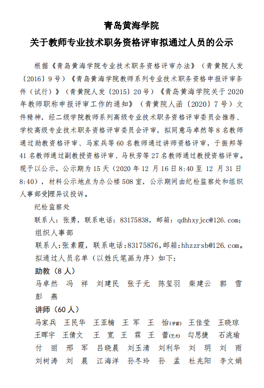 关于教师专业技术职务资格评审拟通过人员的公示