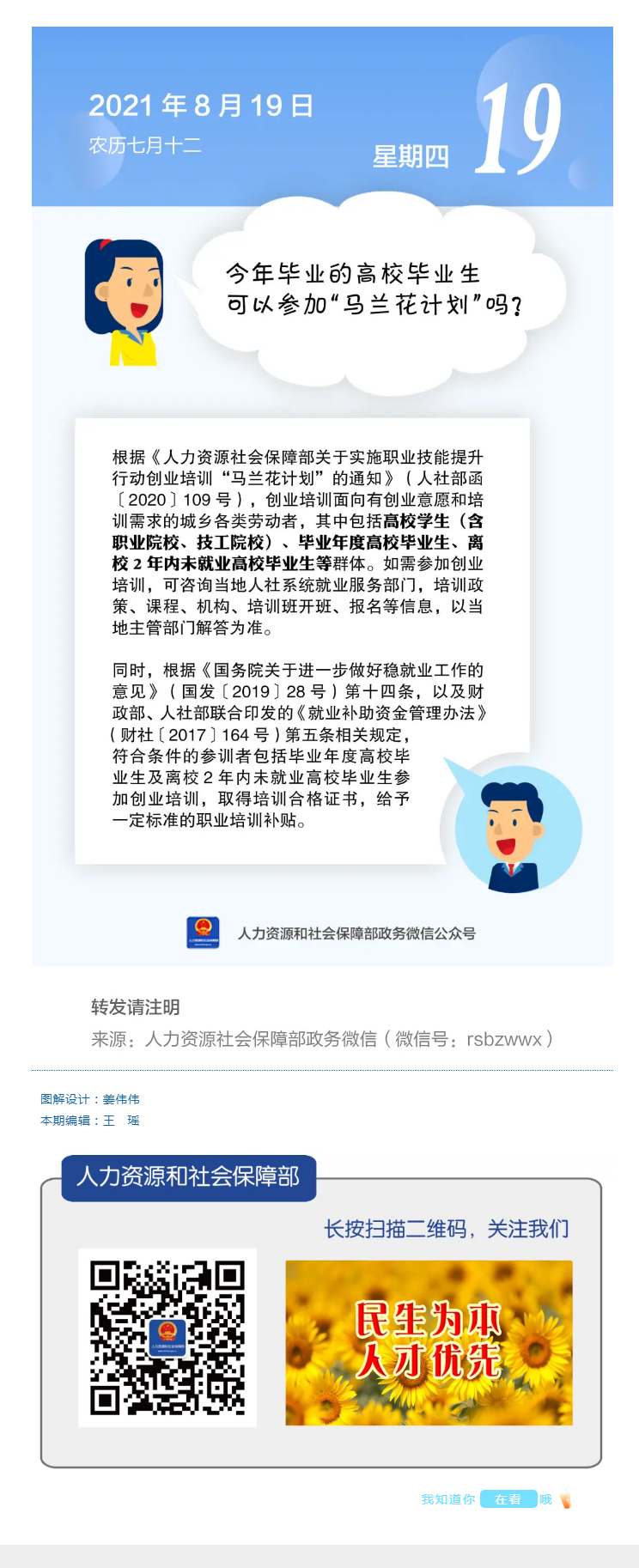 【人社日课·8月19日】今年毕业的高校毕业生可以参加“马兰花计划”吗?