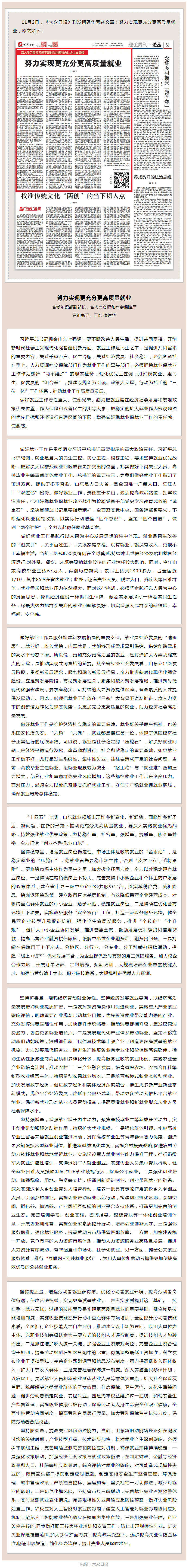 《大众日报》刊发梅建华署名文章:努力实现更充分更高质量就业