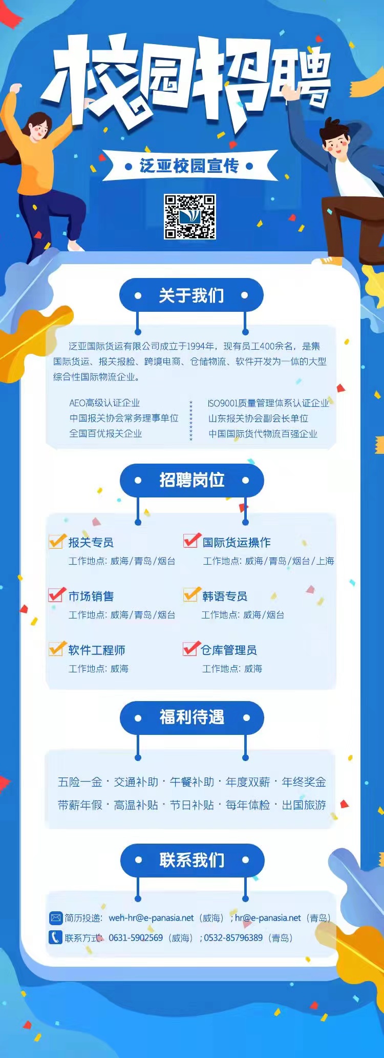 山东泛亚国际货运有限公司青岛分公司招聘简章