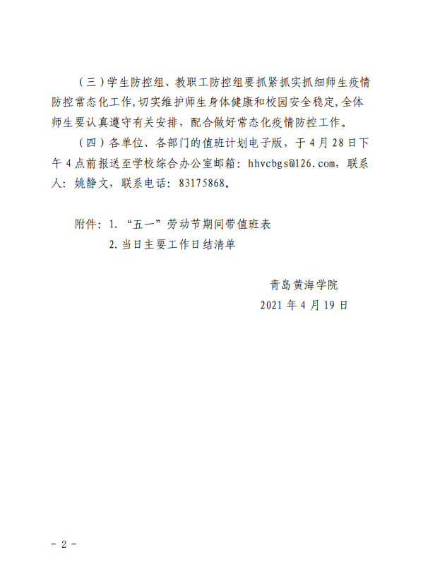 关于 2021 年“五一”劳动节假期安排的通知