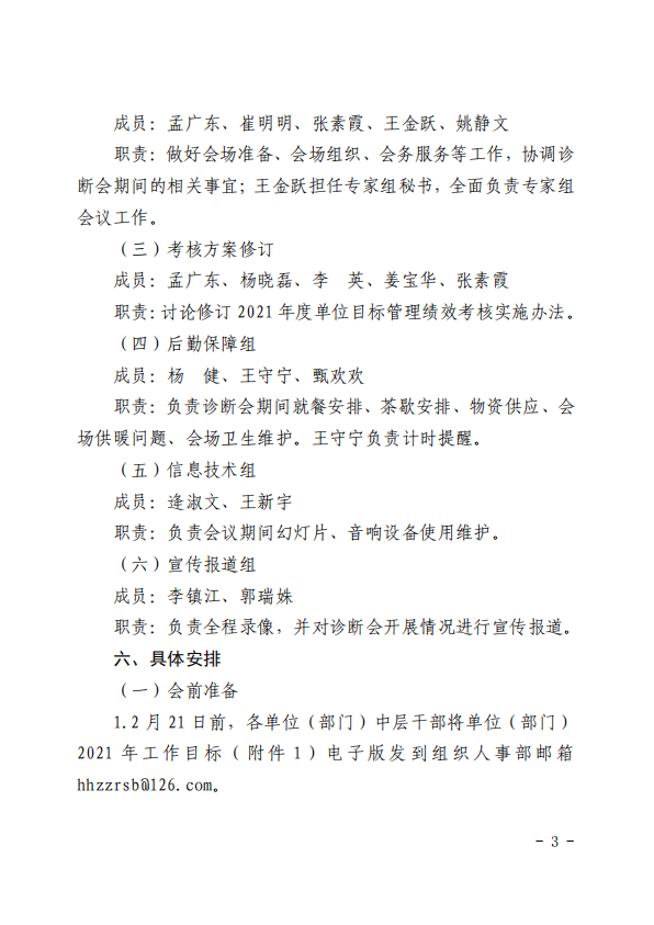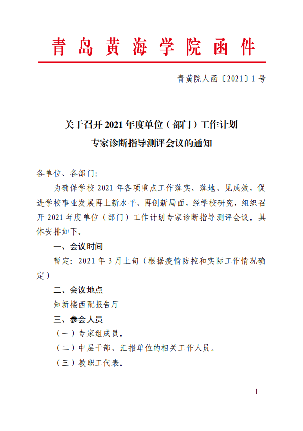 关于召开 2021 年度单位(部门)工作计划 专家诊断指导测评会议的通知