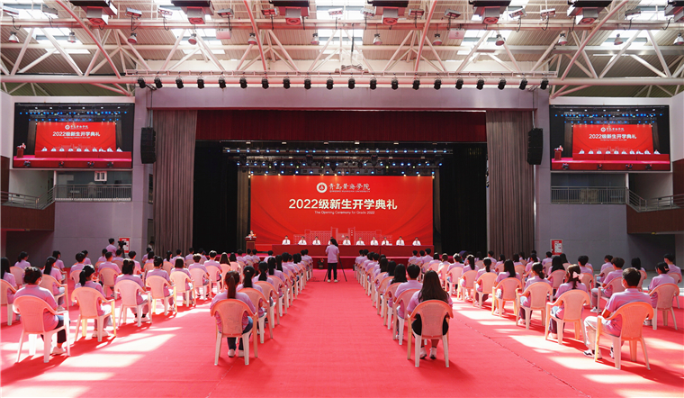 董事长刘常青、校长王渊明、党委书记邢桂强等学校领导班子成员及新生代表在校体育馆主会场出席典礼。刘常青董事长宣布2022级新生开学典礼正式开始,校党委书记邢桂强主持典礼。云端线上,2022级新生在各自班级收看典礼现场直播。开学典礼在雄壮的国歌声中拉开帷幕。