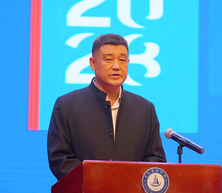 教师代表智能制造学院牛海春老师发言,她代表全体教职工庄严承诺:在今后的工作中坚守立德树人理想信念,贯彻落实科教兴国战略,深化教学改革,传授文化知识,营造创新环境,培育社会英才。