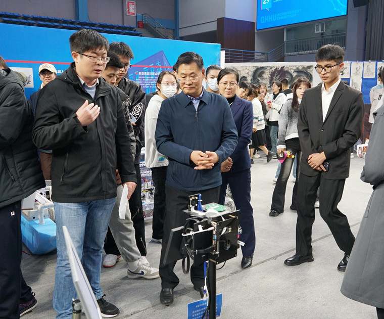 开幕式结束后,与会领导与学生代表一同参观了各学院共同精心准备的科技文化成果展。从机器人、3D打印、多地形自动化荒漠绿化机到针灸、拔罐等传统技艺,再到拓印、剪纸和各种文化创意作品,各个学院和社团的科技文化成果在大家面前一一展现,让大家感受到科技创新与人文创意的同时,也感受到了各学院“一院一品”特色活动的强劲张力。