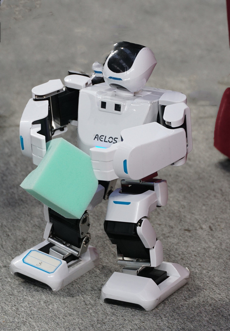 跳舞、下蹲、捡东西……小机器人们做着各种高难度动作,满满的科技感扑面而来。
