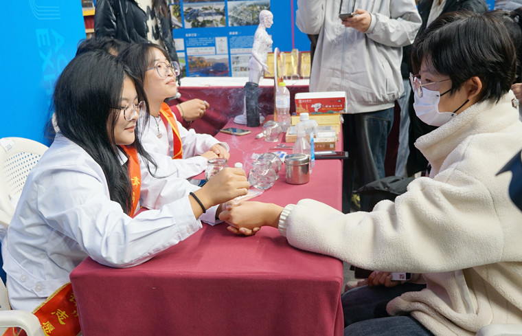 “参加本次科技文化节,同学们通过义诊不仅可以提高实践能力,也能科普一些中医知识。“校康养馆指导老师胡志国表示:“来体验传统中医的学生很多,这对于我国中医文化的传播也有很好的助推作用。”