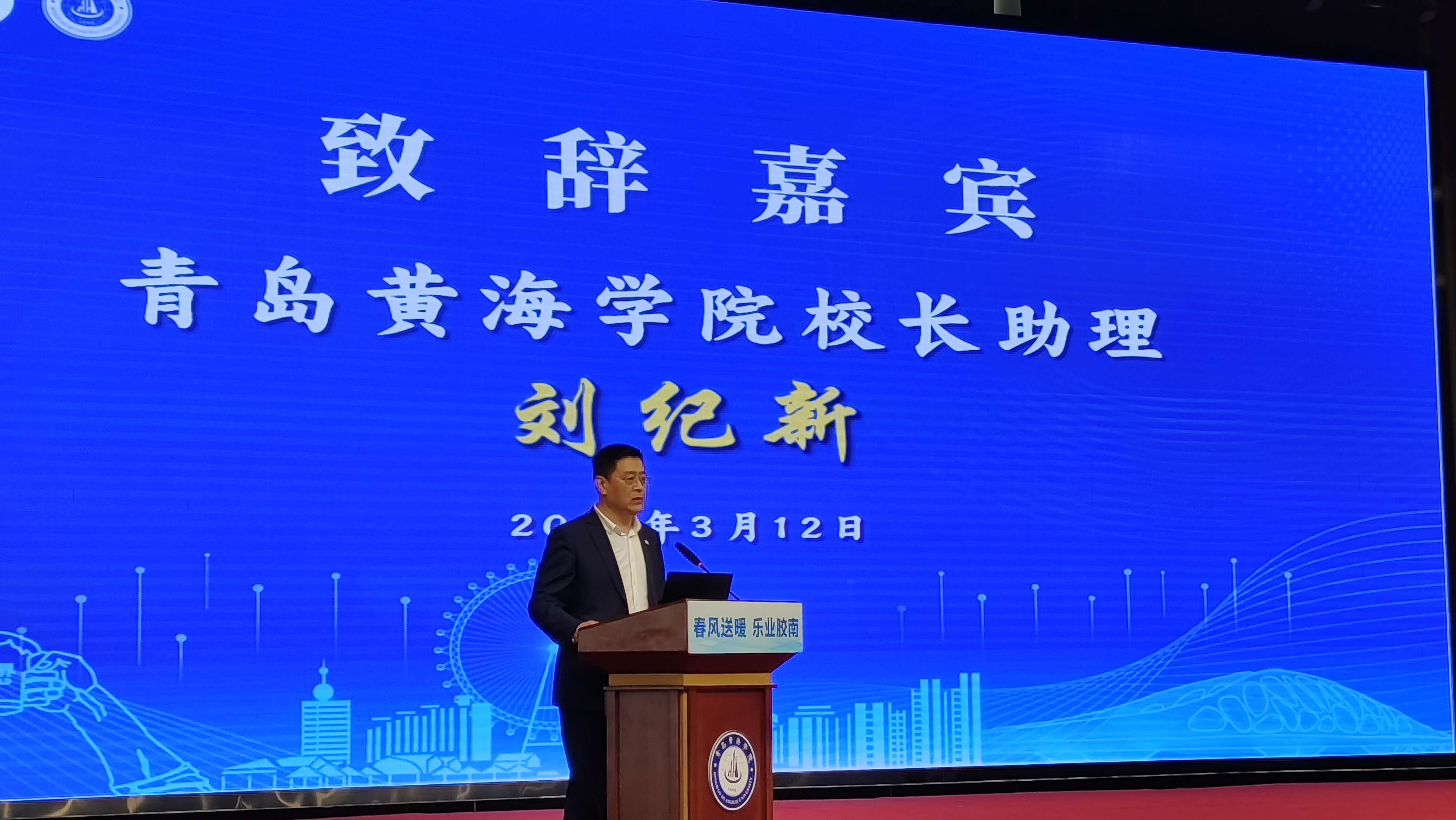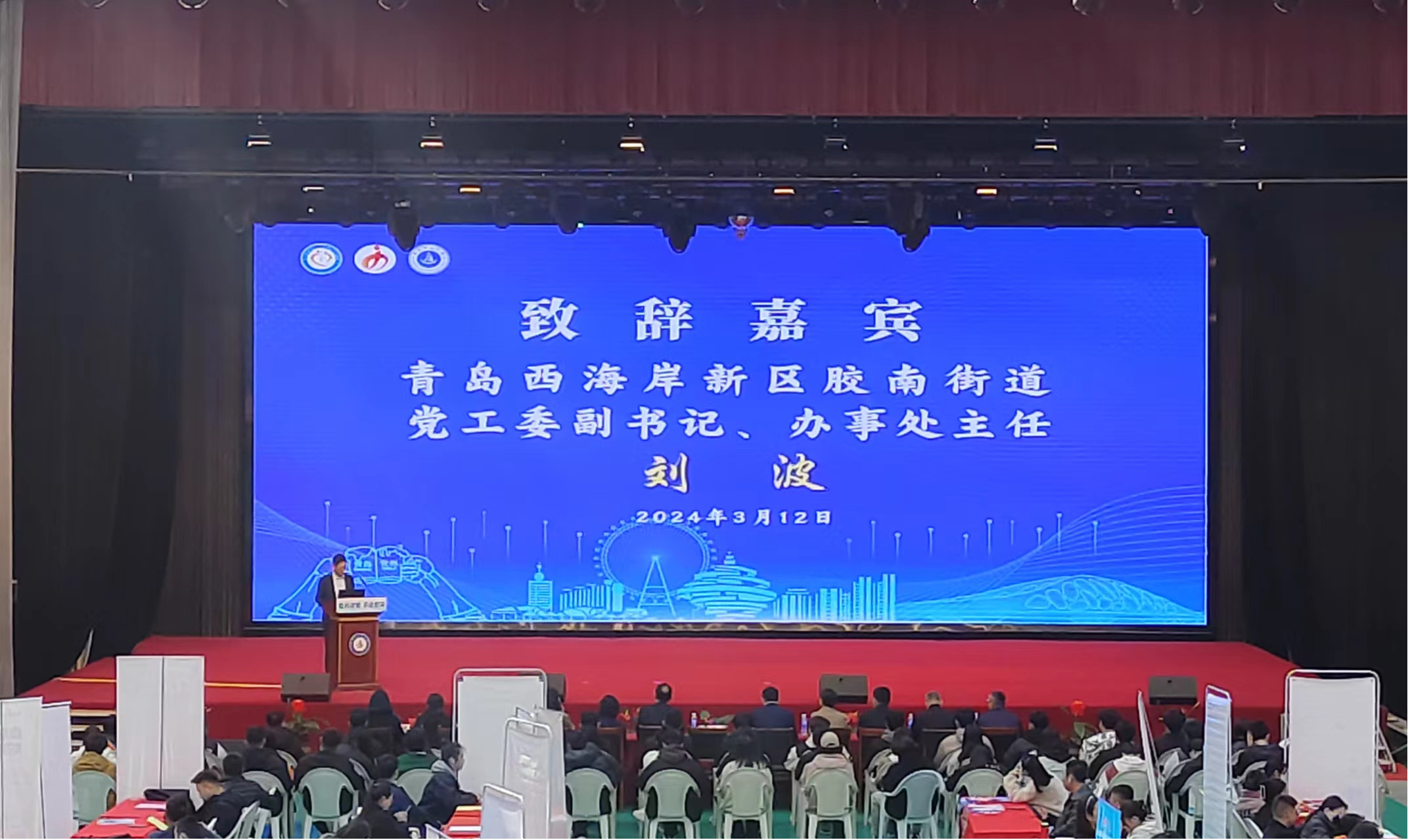胶南街道党工委副书记、办事处主任刘波和我校校长助理刘纪新在招聘会启动仪式上分别致辞。