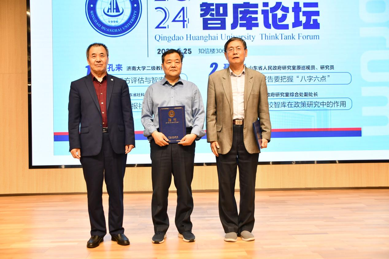 为促进学校智库中心建设,帮助广大教师提高智库报告撰写能力和水平,4月25日下午 ,由科研服务部主办的“青岛黄海学院2024年智库论坛”成功举行。山东省人民政府研究室原巡视员、研究员聂炳华,山东省社科联原一级巡视员、副主席张宏明,青岛市社科联学会部部长肖建来,济南大学二级教授、博士朱孔来,山东省人民政府研究室综合处副处长张克等领导、专家参加论坛。论坛由校长助理刘纪新主持,各二级学院院长、分管科研工作副院长、科研秘书以及部分科研骨干教师参加会议。