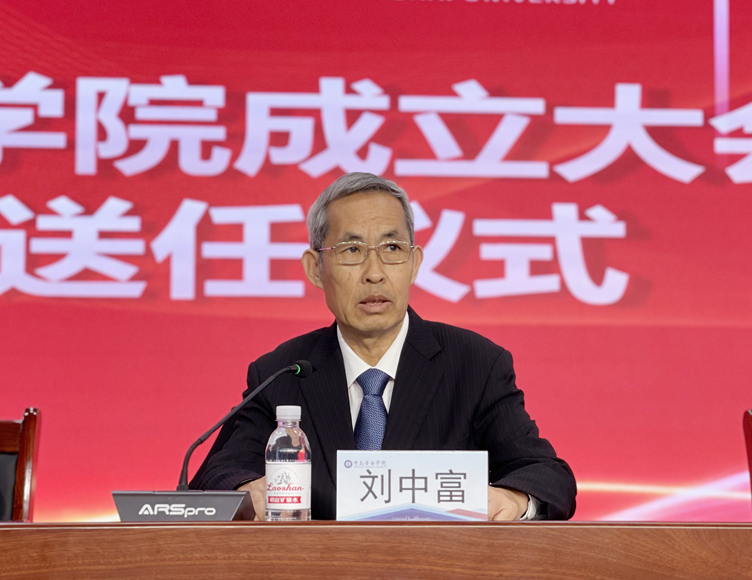语言文化学院院长刘中富做表态发言,他表示坚决拥护和服从学校的决定和安排,深感任务的艰巨和后续工作的挑战。在今后工作中将迅速进入新角色,努力理清思路,稳步推进学院各项工作,虚心求教,潜心学习,合理合法依规依序推进语言文化学院实现高质量发展。并团结带领学院全体师生凝心聚力共奋进,同心筑梦出新篇,为建设国内先进、省内一流的高水平应用型本科高校做出贡献。