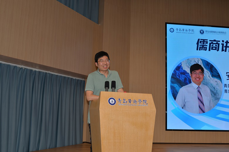 儒商讲堂诚邀青岛市跨境电商领域的优秀企业家现场分享行业发展前沿、企业家精神、创业故事、思维逻辑、成功经验等,启迪并激励热爱创业、敢于创新的黄海学子构建合理的商业思维,学习跨境电商的前沿知识,步入跨境电商领域的创新创业之门,国际商学院常务副院长孙在福主持本次儒商讲堂活动。