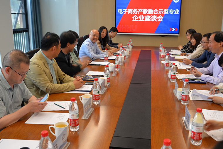 讲座结束后,国际商学院与青岛市跨境电子商务协会在知信楼406会议室举行了产教融合企业座谈会。青岛市跨境电子商务协会的专家和企业家代表就电子商务行业的发展趋势、市场需求以及人才培养的实际需求等方面进行了阐述。随着跨境电商的快速发展,对电子商务人才的需求也越来越迫切,特别是在数据分析、跨境营销、跨境电商运营等方面的专业人才更是供不应求。针对这些内容,与会人员进行了深入的讨论和交流。大家一致认为,要加强校企合作,共同构建电子商务人才培养的生态系统。学院可以通过与企业合作开展实践教学、课程设计等活动,提高学生的实践能力和创新能力;企业也可以为学生提供实习、就业等机会,帮助他们更好地了解市场需求和行业趋势。此外,与会人员还就如何加强师资队伍建设、完善课程体系、优化实践教学等方面提出了具体建议。这些建议将为国际商学院和青岛市跨境电子商务协会在电子商务人才培养方面的合作提供有益的参考和指导。