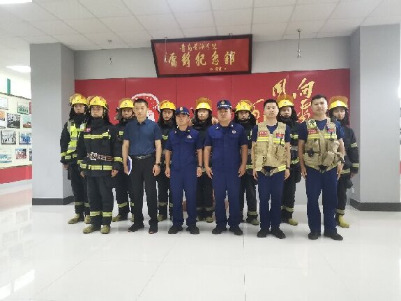 6月6日上午,黄岛区星光岛消防救援站19位指战员在王艳军队长带领下到我校走访并开展工作互动。