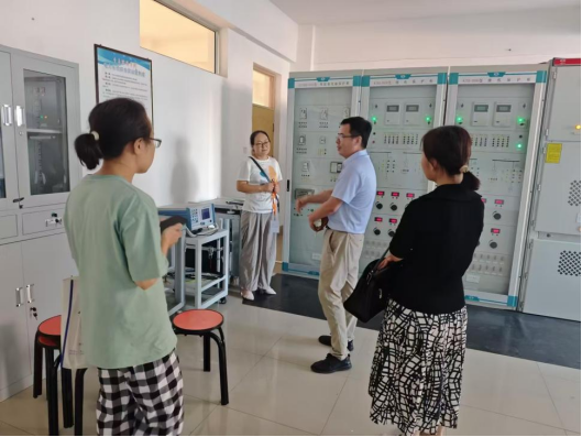 在青岛滨海学院,该校机电工程学院院长助理,电气工程及其自动化专业负责人薛彬教授、电气教研室主任史芸主任、马乳娜老师参加了交流,分享了他们在本科教育教学审核评估、学科建设等方面的经验,马乳娜老师对该校电力系统实验室建设情况做了详细讲解。