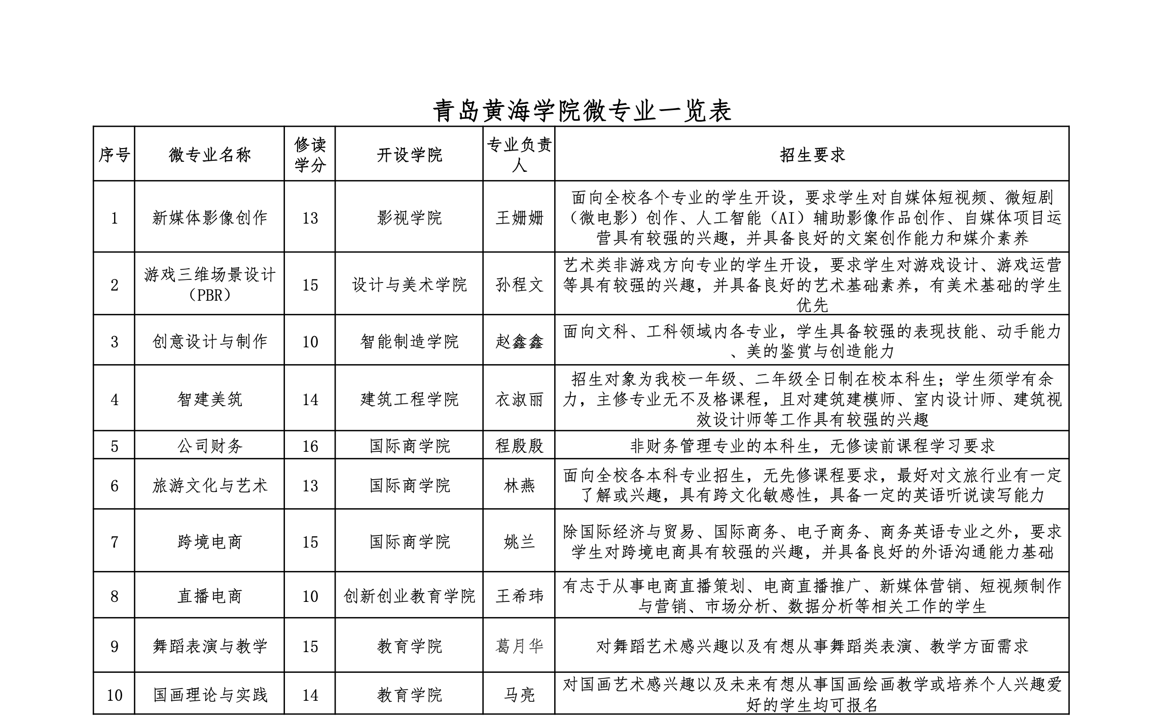 青岛黄海学院微专业一览