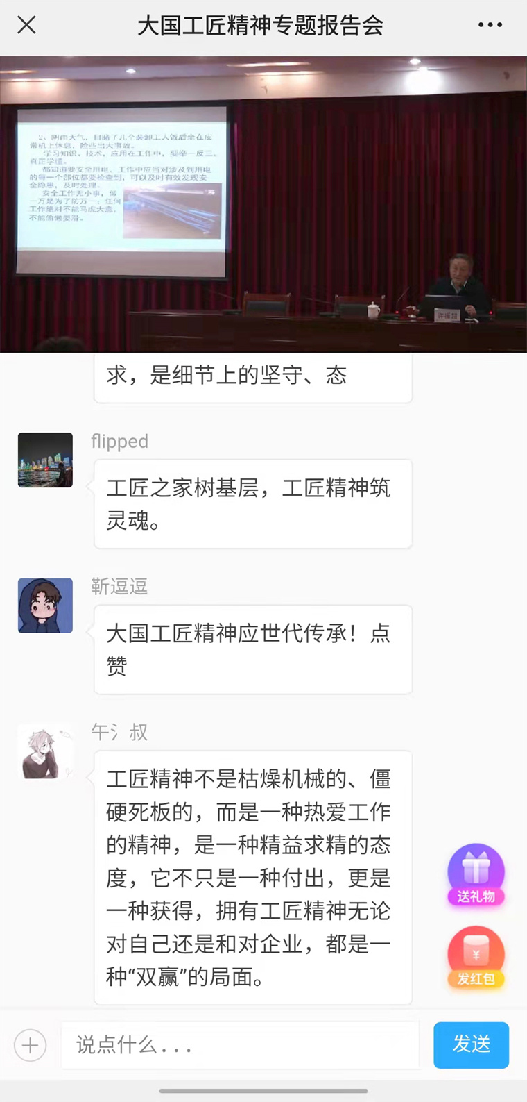 通过此次报告会,加强了师生们对“工匠精神”的深刻理解,感悟了大国工匠精神背后的力量,领略了在平凡中坚守成就的不凡,坚定了学好专业课程,弘扬大国工匠精神,融合实践与创新的理想信念。