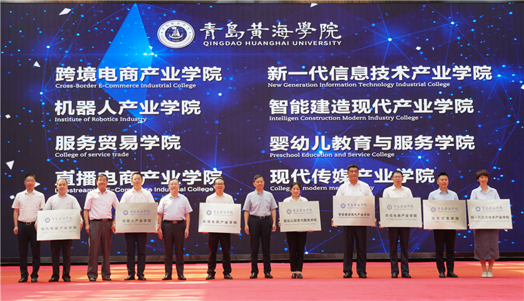 青岛黄海学院始终坚持地方性、应用型办学定位,为区域经济社会发展培养高素质应用型人才。建设现代产业学院,是青岛黄海学院贯彻落实全国教育大会精神,深化政校行企深入合作的重要举措,也是大力推进产教融合协同育人,打造应用型本科高校的必然要求。本次揭牌成立的8个现代产业学院分别为:新一代信息技术产业学院、服务贸易学院、跨境电商产业学院、智能建造现代产业学院、婴幼儿教育与服务学院、直播电商产业学院、机器人产业学院、现代传媒产业学院。