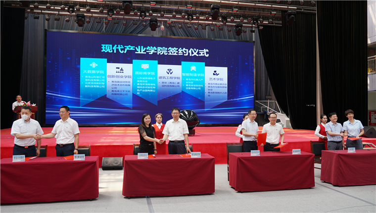 6月23日上午,青岛黄海学院现代产业学院揭牌仪式在学校体育馆举行。八大现代产业学院集体揭牌,政、校、行、企四方协同,聚力开展建设,构建出全方位、全过程、深融合的协同育人新机制。