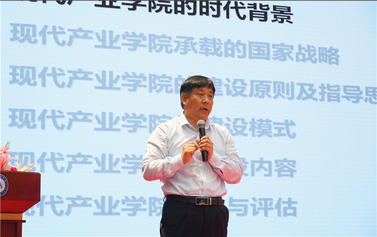 揭牌仪式最后,中国石油大学计算机学院、软件学院院长、山东省泰山产业领军人才庞善臣教授作题为《现代产业学院建设的几点思考》,从现代产业学院的时代背景、承载的国家战略、建设原则、指导思想、建设模式、建设内容、评价与评估等方面做了精彩分享。