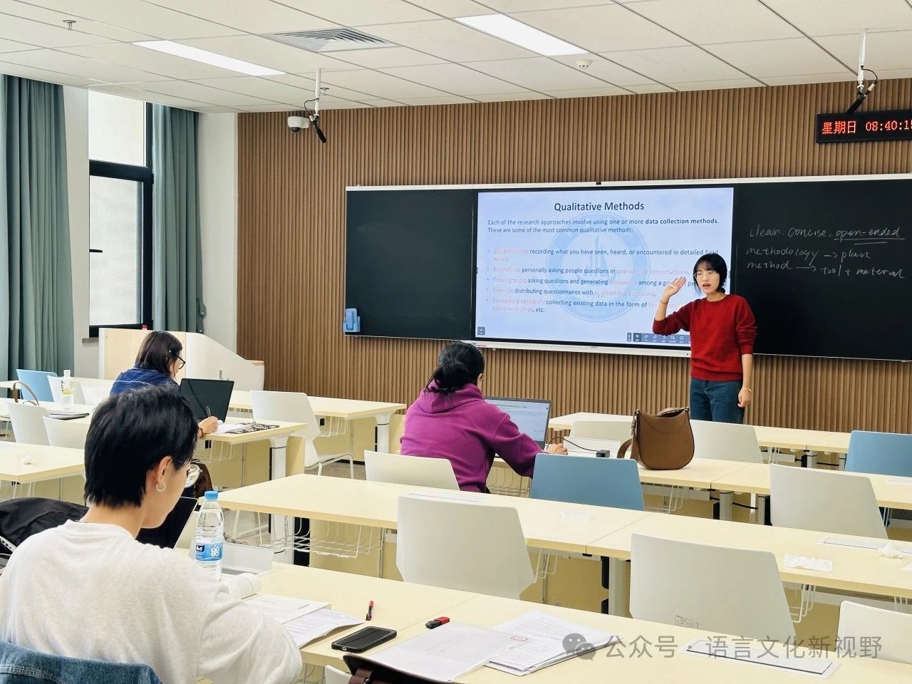 中文系的老师们则在知信楼530教室,将多媒体与人工智能技术结合,通过对传统文学课堂的现代化改造,探讨如何更好地提升学生的学习兴趣和课堂参与度。