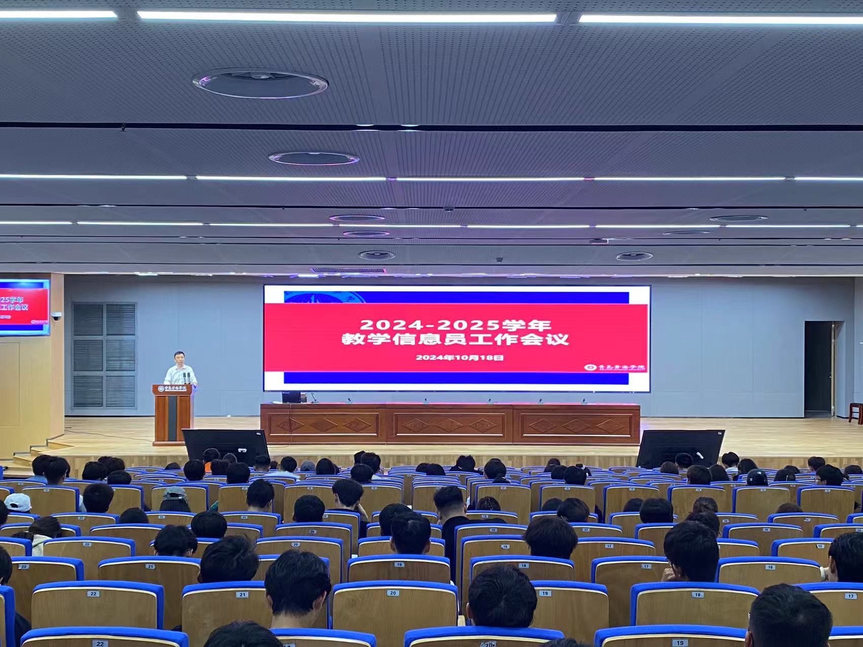 2024年10月18日下午,2023-2024学年优秀学生教学信息员表彰大会暨2024-2025学年学生教学信息员工作会议在知信楼B01报告厅举行,来自各学院的200余名2024级学生教学信息员及2023-2024学年优秀学生教学信息员到场参会,质量监控与评估中心副主任郭均栋,校级教学督导赵斌、刘煜、于秋慧、孟兆臣、初铭铜出席会议。