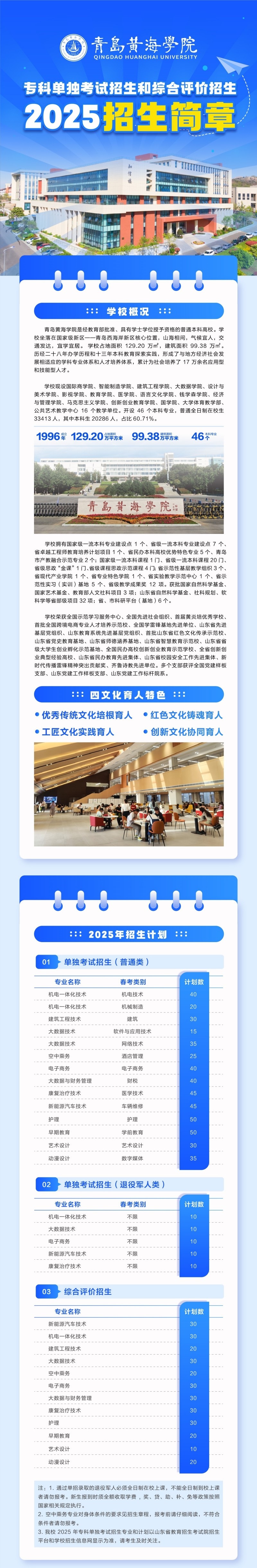 青岛黄海学院2025年专科单独考试招生和综合评价招生简章