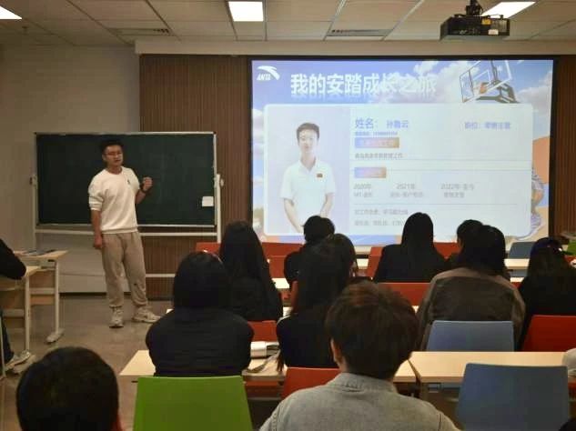 孙鲁云校友作为安踏集团青岛奥莱零售主管,自2020年毕业后入职安踏集团,由最开始的多店轮转学习到进行单店管理,一步步扩展到多店运营管理,从2023年5月开始负责青岛奥莱零售工作事项。以新模式,新思路为导向,逐步探索、稳中求进,向同学们分享了自己的求职过程以及职业发展中的关键节点和心路历程。