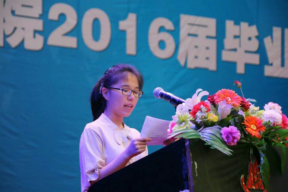 回想刚成为大学生的她,懵懂纯真,对所有的一切都充满兴趣与热情,一次巧合的机会让她进入了财经学院学生会办公室,自此开始了她漫漫四年的学生会生涯:大一,学院学生会办公室成员;大二,学院学生会办公室主任;大三,学院学生会主席;大四,经过竞选成为校学生会主席。期间,她组织开展了各色各样的实践活动。点钞大赛是她亲自策划并组织完成的第一个全院性质的比赛,光是策划书反复修整了十几遍,人员安排、物资筹备、场地安排、经费赞助、设备调试、比赛内容每一个环节,每一个细节都仔细斟酌。有了这次活动组织经验,让她以后在组织迎新晚会、团体操大赛、元旦晚会等活动中如鱼得水、信手拈来。2016届毕业典礼发言