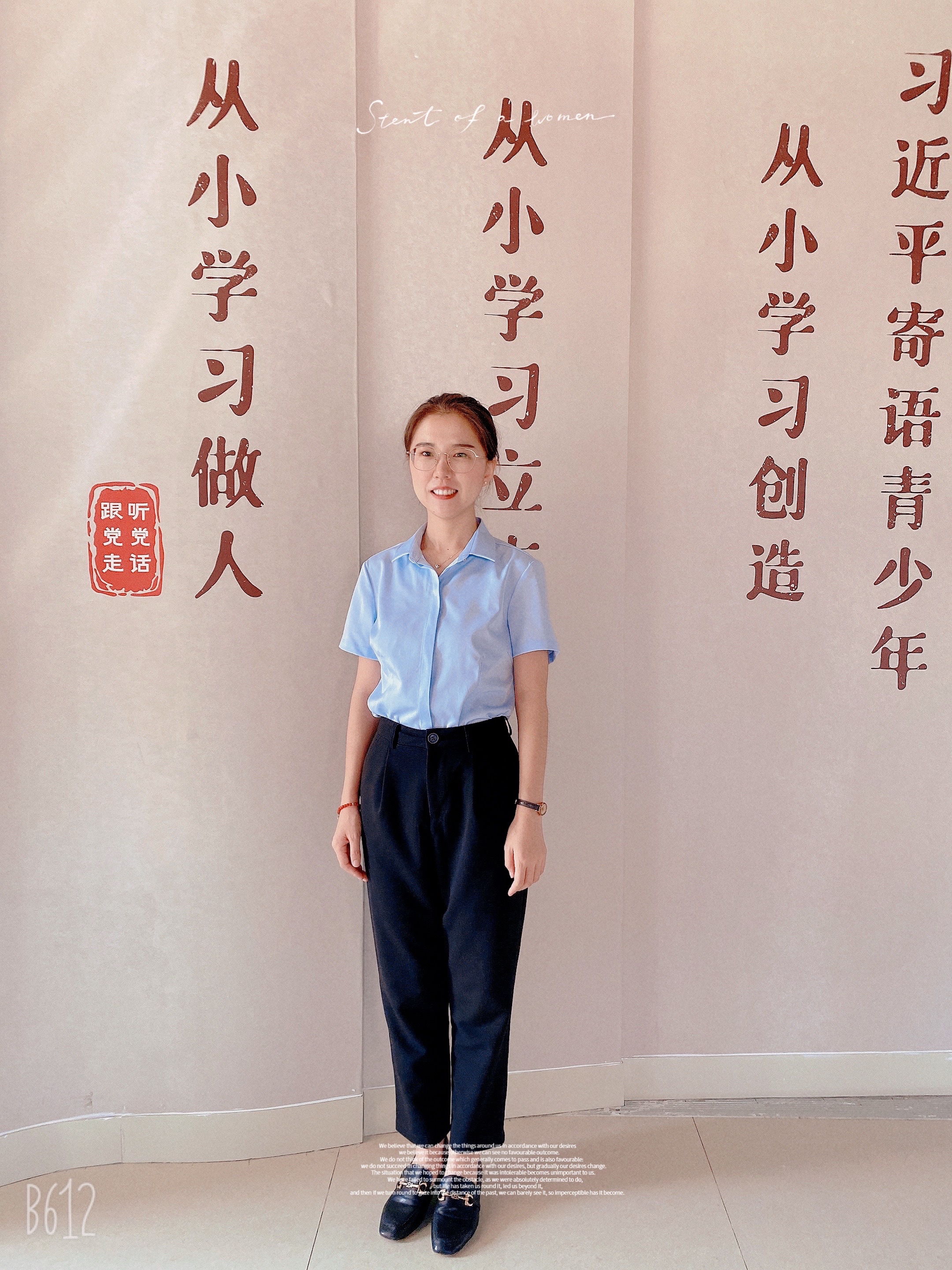 毕业后,她入职了青岛滨海建设集团,担任财务助理一职。但一年的财务工作让她发现自己并不适合从事该行业,正整日郁闷时,从同事口中得知非师范生也可以从事教师工作,这不正是她从小就梦想的职业吗?于是又一次燃起她的斗志,开始规划自己的时间和漫漫考试之路。在经历了一年的学习后,她最终考上教师编制,在2019年9月入职于淄博市淄川区经济开发区实验学校,成为一名光荣的初中语文教师。