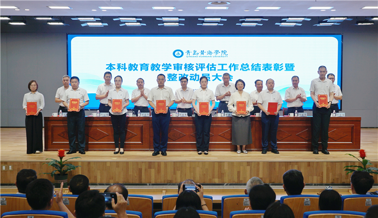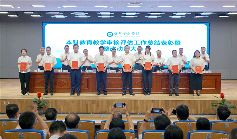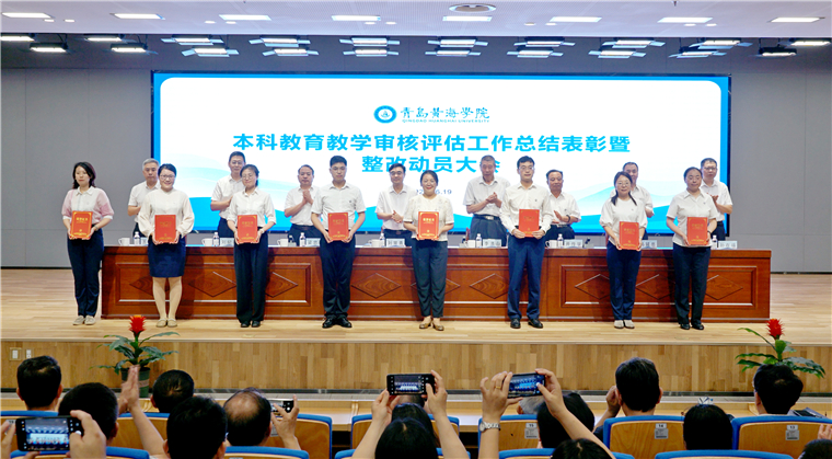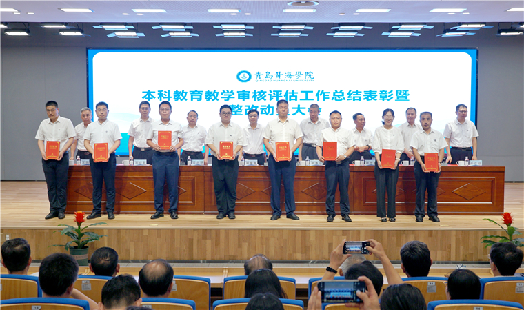 6月19日下午,青岛黄海学院本科教育教学审核评估工作总结表彰暨整改动员大会在知信楼B01报告厅隆重举行。学校领导、各部门和二级学院负责人、受表彰的本科教育教学审核评估先进个人以及部分教师代表出席大会。