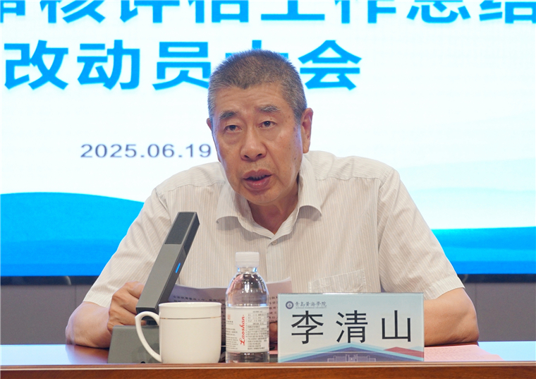 校长李清山以《总结经验 扎实整改 续写高质量发展新篇章》为题讲话,对学校前期评建工作进行了总结,对扎实推进审核评估整改工作,推动学校高质量发展进行了动员和部署。他表示,在整个评建过程中,全校上下同心、全力以赴、争先创优、甘于奉献,以评促建,基础设施全面升级;以评促改,综合改革成效显著;以评促管,质量管理全面提升;以评促强,特色品牌优势彰显。在大家的共同努力下,评估专家组对学校的办学和本科人才培养工作给予高度评价和充分肯定。