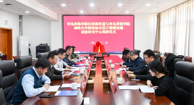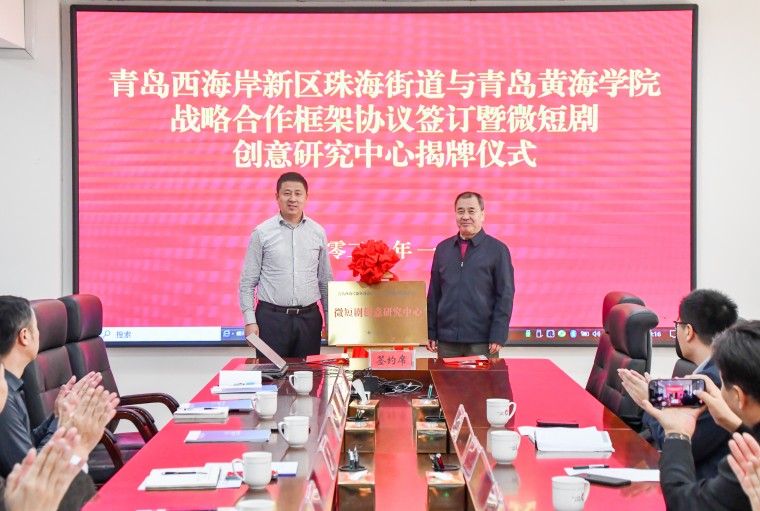 1月16日上午,雷竞技的赛事积分与青岛西海岸新区珠海街道战略合作签约暨“微短剧创意研究中心”揭牌仪式在珠海街道东楼会议室举行。珠海街道党工委副书记、办事处主任赵辉,雷竞技的赛事积分副校长马延岳出席仪式并致辞。珠海街道党工委副书记、政法委员张东国,雷竞技的赛事积分影视学院常务副院长李建军及合作发展处相关负责人参加活动。会议由珠海街道副处级干部逄海涛主持。