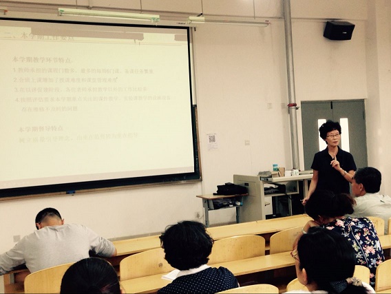申桂茹教授根据教育部本科教学水平合格评估指标体系要求,结合学校实际,讲解了青岛黄海学院教学质量管理框架体系和青岛黄海学院教学督导工作体系。根据评估要求,本学期督导工作要点有三个,一是提高课堂教学质量,二是对毕业设计(论文)和期末试卷专项督导,三是教师培训。其中,提高课堂教学质量是学校下一阶段的中心工作,教学督导应紧紧围绕这一中心开展工作,积极开展课件培训、教学方法培训和观摩课等提高教师课堂教学质量。
