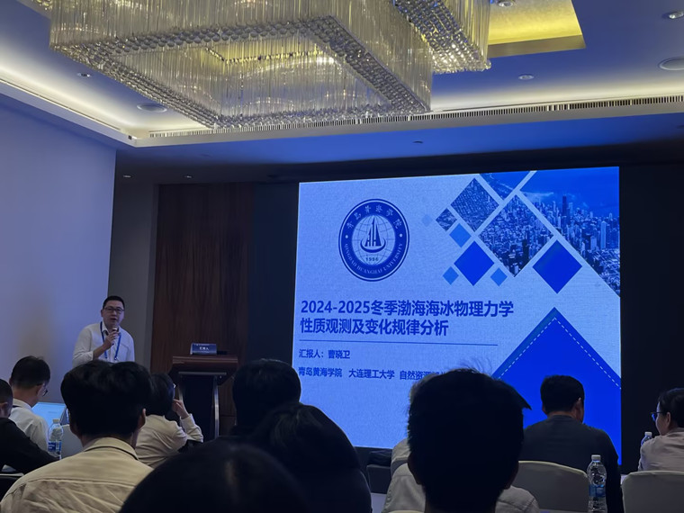 在“冰区环境条件”分会场,曹晓卫作了题为《冬季渤海海冰物理力学性质观测及变化规律分析》的专题报告。报告系统展示了近年来在渤海海域开展的海冰现场观测工作,详细阐述了海冰的强度、厚度、密度等关键物理力学参数的最新实测数据及其时空变化规律。