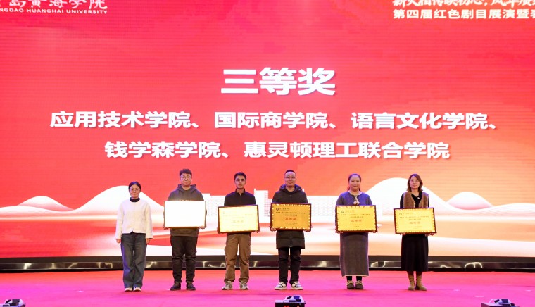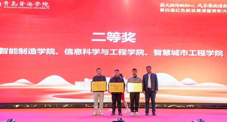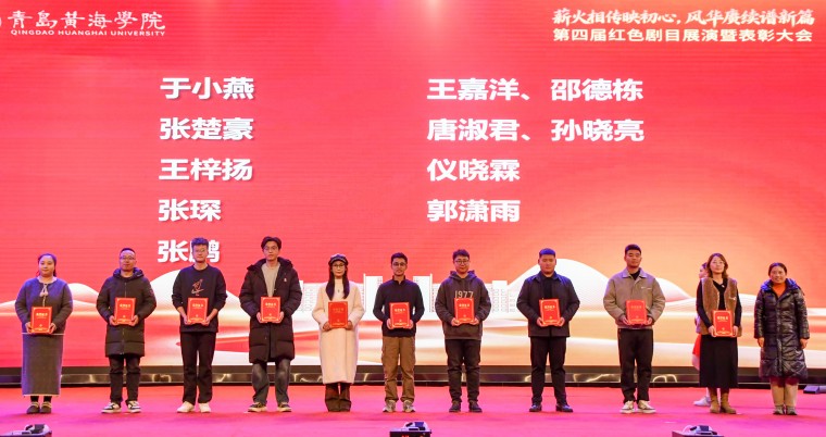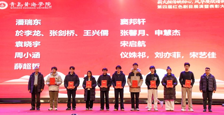 岁月铭刻奋斗足迹,光影映照赤诚初心。为深入学习贯彻习近平新时代中国特色社会主义思想,引导广大青年学子铭记党的光辉历程,12月12日晚,青岛黄海学院第四届“薪火相传映初心,风华赓续谱新篇”红色剧目展演暨表彰大会在学校体育馆隆重举行。党委委员、副校长刘纪新,副校长王鹏程,党委委员、纪委书记、学生工作部部长赵国光等学校领导以及相关部门负责人、各二级学院党总支书记、分管学生工作院长等出席活动。全校师生代表3000余人齐聚一堂,共同奔赴这场跨越时空的红色精神之约。