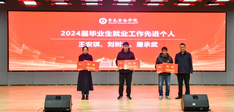 12月18日上午,青岛黄海学院2024届毕业生就业工作表彰暨2026届毕业生就业工作启动会在知信楼报告厅召开。校长李清山、副校长梁忠环、刘纪新、王鹏程出席会议。各二级学院及相关部门负责人、各二级学院就业专岗教师、毕业班辅导员及招生就业处全体人员参加会议。会议由党委委员、副校长刘纪新主持。