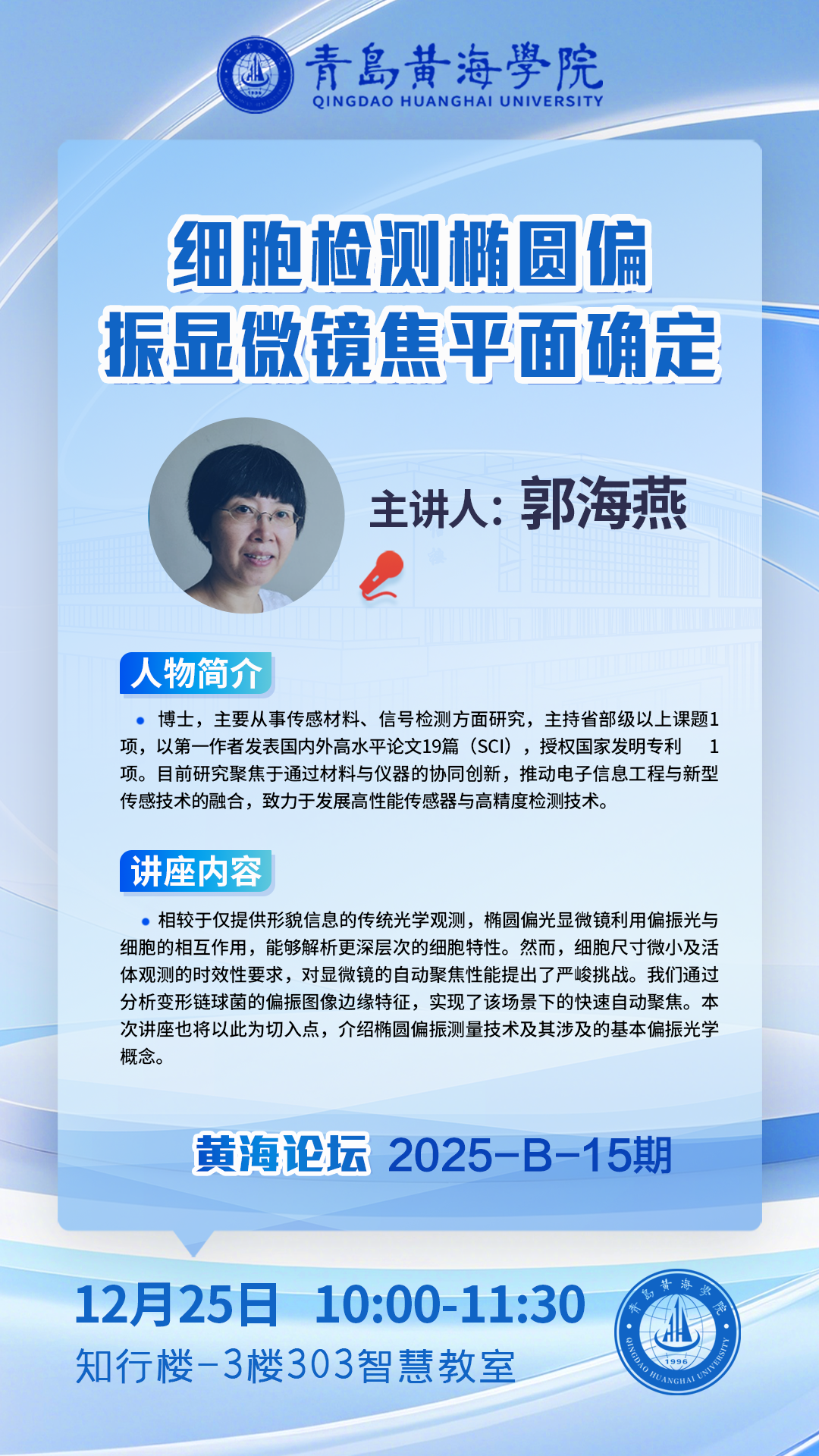 讲座地址:知行楼-3楼303智慧教室