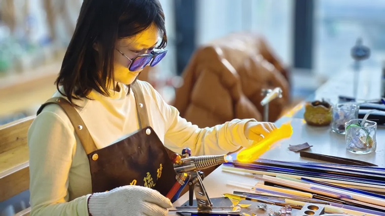 琉璃烧制技艺在我国已有数千年历史,2008年被列入国家级非物质文化遗产名录。其中,灯工技艺是琉璃制作的重要门类,利用琉璃的热塑性与热熔性,在高温中边加热边塑型,被誉为“火中的雕塑”。